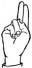 На ћирилици написано ВУКАН ЛУДОШКИ састоји се из 12 слова [?]. Исписано ћириличном једноручном азбуком за глувонеме:
